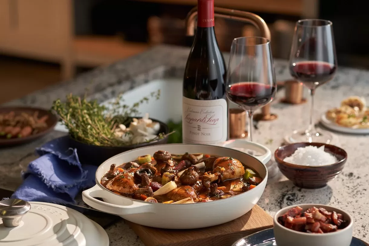 Gà hầm rượu vang kiểu Việt hóa là phiên bản thân thiện hơn của món Coq au Vin nổi tiếng nước Pháp, được biến tấu với nguyên liệu dễ tìm, gia vị thuần Việt nhưng vẫn giữ được hương vị đặc trưng của rượu vang nồng nàn và gà hầm mềm tan. 🍲