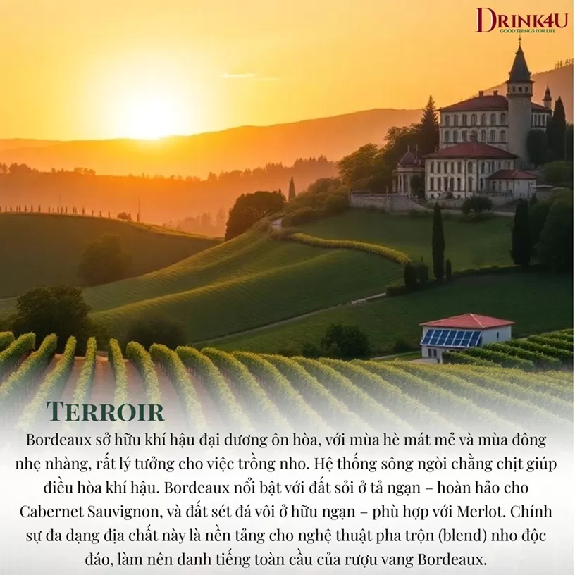 Bordeaux sở hữu một "terroir" (tổng hòa các yếu tố tự nhiên và con người) độc đáo, là bí quyết tạo nên sự đa dạng và phức tạp trong hương vị của những chai rượu vang nơi đây: